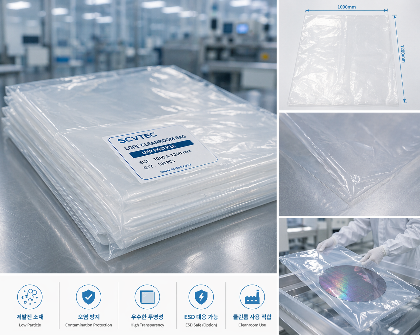 SCVTEC은 반도체 클린룸 환경에 적합한 LDPE Bag 및 PE Cleanroom Bag을 공급합니다.